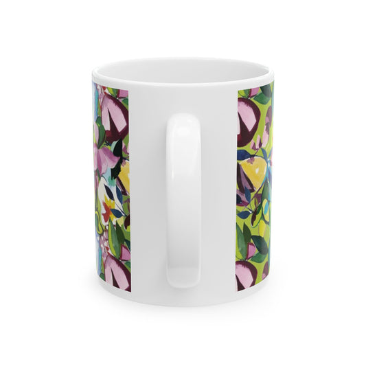 Purple Flowers Ceramic Mug, (11oz, 15oz)